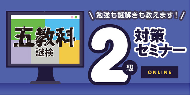 1つの解に対して、どれだけたくさんの考え方やアプローチを思いつけるか、その可能性を探る力が謎解き力です。学習にも仕事にも生活にも必要なこの力を身に付け、強化することができる五教科謎検と、その対策に最適なオンラインセミナーに、どうぞご期待ください。