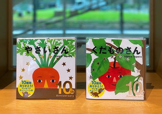 絵本やワークショップなどで幅広く活躍するtupera tuperaの代表作の一つでもある、『やさいさん』『くだものさん』。『やさいさん』をはじめとするしかけ絵本シリーズは累計125万部を突破。そんな『やさいさん』『くだものさん』10周年を記念して、特製カバー版を発売いたします。対象キャンペーンに応募すると抽選で特製りんごさんピンバッジをプレゼントいたします。