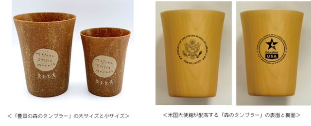 ・10月24日と25日に愛知県豊田市の県道豊田市停車場で開催する「Toyota Street Market」において、豊田市の間伐材を使用した「豊田の森のタンブラー」を限定販売します。地域の余剰有機物を活用したご当地オリジナルの「森のタンブラー」を販売するのは今回が初めてです。