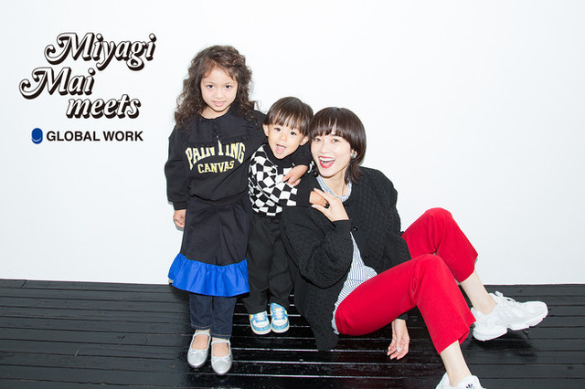 グローバルワークのキッズは、ターゲットである30代前半のママへ向けて新しい提案をしたいという想いから、男児の母でありながら様々な分野で活躍されているモデル宮城舞さんと「70'sヴィンテージ」をテーマに初めてのコラボ商品を制作しました。
