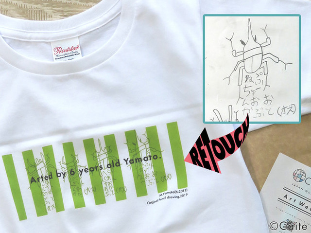 写真で撮影した子供の絵や落書きを入稿してもらえると弊社でアート処理を施してTシャツを作成します。