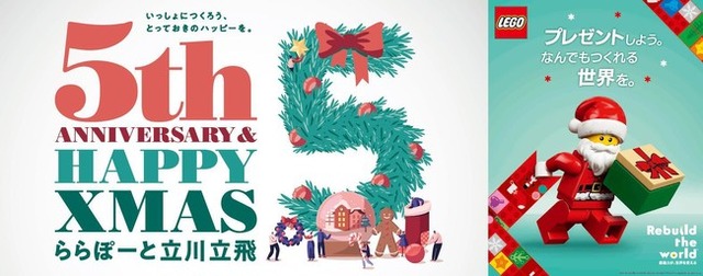 三井不動産商業マネジメント株式会社(所在:東京都中央区、代表取締役社長大林 修)が運営する、三井ショッピングパークららぽーと立川立飛は、5周年を記念して、レゴ ジャパン株式会社(所在:東京都港区、代表取締役社長:長谷川 敦、以下レゴ ジャパン)とコラボレーションしたクリスマスイベント「ららぽーと立川立飛 5th ANNIVERSARY&HAPPY XMAS」を、 2020年10月31日(土)~2020年12月25日(金)の期間に開催します。