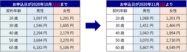なお、保険料改定前の「アクサダイレクトの終身医療」のお申込みは、2020年11月1日(日)の終日、販売を停止させていただきます。