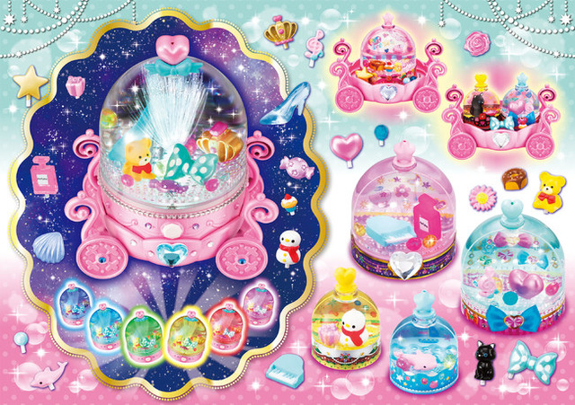 完成したアクアドームは付属の“アクアワゴン”に乗せて飾ることができます。その際、アクアワゴンにデコパーツを飾ったり、ラインストーンを貼ってデコレーションすると、より豪華な雰囲気を楽しめます。