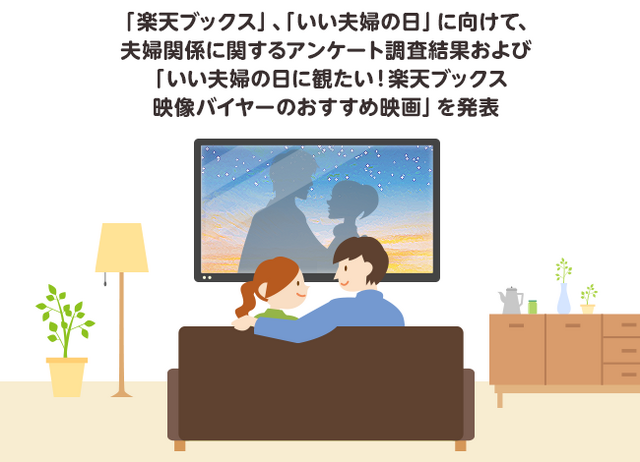 楽天株式会社(本社:東京都世田谷区、代表取締役会長兼社長:三木谷 浩史、以下「楽天」)が運営するオンライン書店「楽天ブックス」は、2020年11月22日(日)の「いい夫婦の日」に向けて、「楽天ブックス」ユーザーの既婚者を対象とした「夫婦関係に関するアンケート調査」(注1)を実施し、その調査結果および「いい夫婦の日に観たい!楽天ブックス映像バイヤーのおすすめ映画」を本日発表しました。