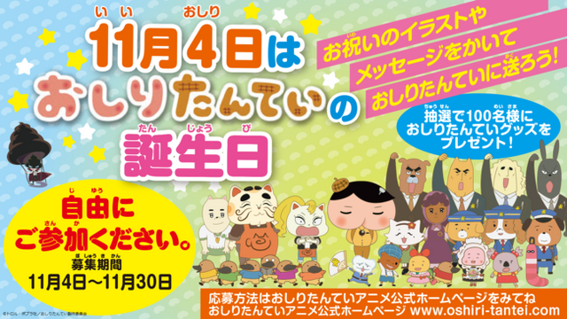 応募方法はアニメおしりたんてい公式ホームページをみてね