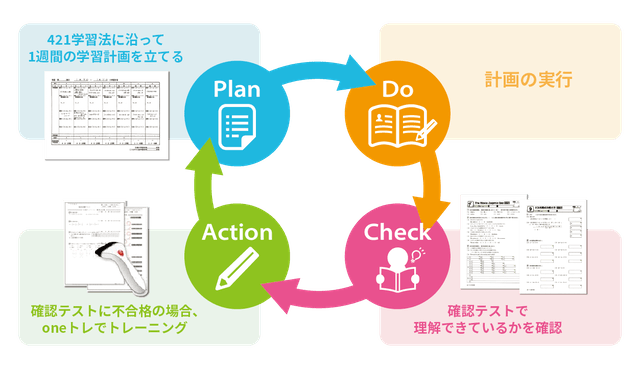 そしてテストを受験し、計画の改善点があれば次の計画に反映させます。PDCAサイクルに沿って行う学習です。