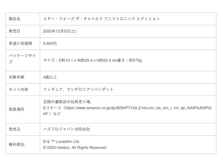 ハズブロジャパン合同会社(本社:東京都千代田区)は、12月5日より、25種類以上のサウンドと動きの組み合わせが搭載された新商品『スター・ウォーズ ザ・チャイルド アニマトロニック エディション』を発売いたします。