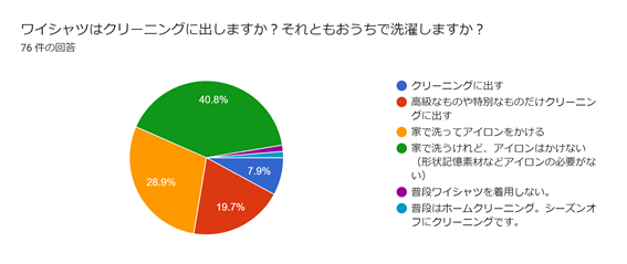 この結果を見ると、ワイシャツをクリーニングに出す家庭は少数派。「高級なものならクリーニングに出す」という方も含め、4人に1人にとどまっています。