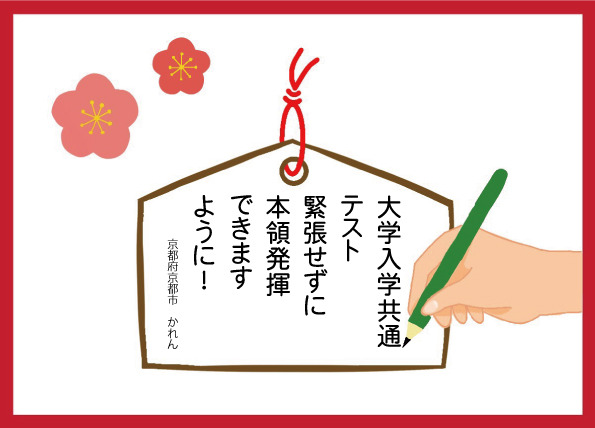 ・京都への進学を目指す受験生を対象に,絵馬型のフォームに願い事を募集する。