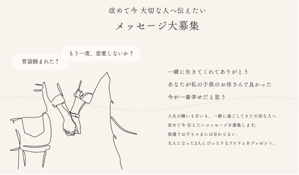 スペシャルWEBサイト内の応募ボタンより、必要事項と「大切な人に伝えたいメッセージ」を入力し応募。