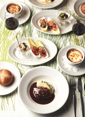 オニオングラタンスープ、前菜、パン、牛肉ワイン煮の洋食セットを冷凍便でお届け。注文するだけでクリスマスのディナーが完成。