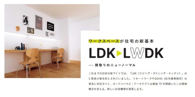 ニューノーマルを迎えたいま、ビフォーコロナの常識とは違った働き方が求められるようになり、「衣食住」を基本とする生活スペースだけでなく、「働(く)」の機能も必要となりました。そこで、オープンハウス・アーキテクトは戦後 75 年間も続いた「LDK」の建築概念を変える、新しい住居構想「LWDK」を提案します。