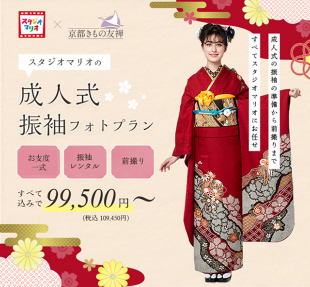 京都きもの友禅株式会社(本社:東京都中央区、代表取締役社長:服部雅親、以下京都きもの友禅)は、株式会社キタムラ(本社:神奈川県横浜市、代表取締役社長:浜田宏幸)が運営する記念日スタジオ「スタジオマリオ」と提携し、新たな生活様式における振袖ニーズに応える「振袖フォトプラン」を、2020年11月より一部店舗で導入を開始いたします。