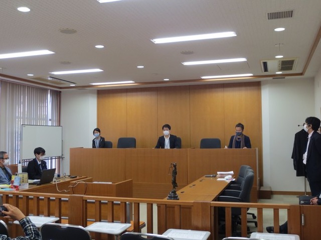 話し合いが終わった後、実際の法廷を模した模擬法定教室で、裁判員裁判の裁判員として各グループごとに導いた判決の内容を発表しました。