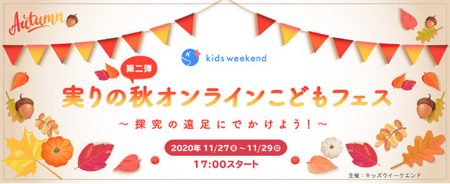 子ども向け「教育×オンライン」の分野では、日本最大級のプラットフォームである「キッズウィークエンド」を運営するキッズシーズ株式会社(本社:東京都中央区、代表取締役:三浦里江)は、11月27日(金)~12月5日(土)の2週末にわたり、未就学児から小学生の子どもたちに向けた「実りの秋オンラインこどもフェス2020」を開催します。