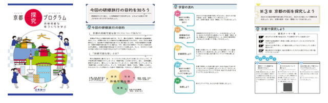 今回は、修学旅行の訪問先で人気のある京都の街歩きをしながら、持続可能な街づくりについて考えることができるよう、ワークブックを設計しています。京都市が取組むSDGs達成に向けた取組みに触れながら、世界的な観光地である京都の課題とその対策について学びます。また、修学旅行実施後に京都の取組み事例を参考に、自分たちが住む街の課題と解決に向けた取組みを考え発表します。次世代を担う中高生が「持続可能な街づくり」について主体的に学び、SDGs達成に向けた取組みができるよう積極的なサポートを行なっていきます。