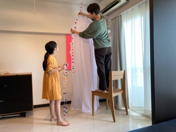 今回は、自分と子ども、それぞれの居場所を確保したいMさんをご紹介。テレワークが増えリビングで仕事をするMさんと、家族が居るリビングで過ごしたい娘さん。お互いが同じ空間に居ることを感じながらも、各々仕事や遊びに集中できるリビングに出来ないものかと考えていました。そこで、Mさんの目の届く場所に娘さんの好きな読書を楽しむ専用スペースを作ることに。スペース作りのために、もともと置いてあった子どものおもちゃや大型の荷物をどこに片付けるのか、読書に集中できる可愛いスペースをどう作るのか、Mさんや娘さんの要望にあったグッズ探しなどを『kurasul(クラスル)』編集部が今回もお手伝いしました。せっかく作るなら憧れを形にしようと、今回のワンモアルームの主力アイテムは天蓋カーテンに決定。「仕事をしながら子供が遊ぶ様子も見守りたい」「限られたスペースで家族みんなが各々おうち時間を楽しめるようにしたい」。そういう方も多いんじゃないでしょうか。スペースを有効活用する手段がわかれば、誰でも実践できます。母娘で素敵なワンモアルームを作り上げ、各々落ち着いて過ごせるリビングになる過程をぜひご覧ください。