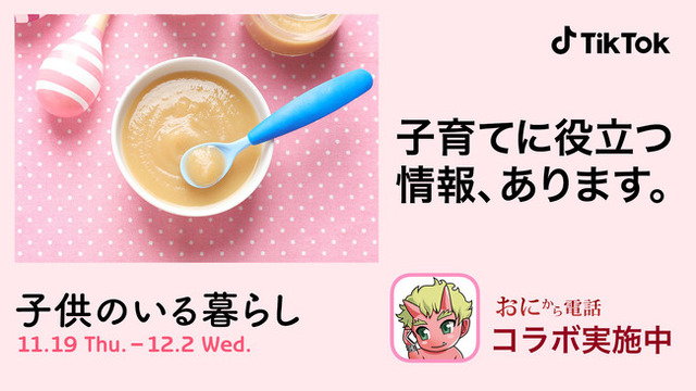 ショートムービープラットフォーム「TikTok(ティックトック)」では、11月19日(木)から12月2日(水)までの2週間、子育て中のパパママに向けたキャンペーン「#子供のいる暮らし」を開催いたします。