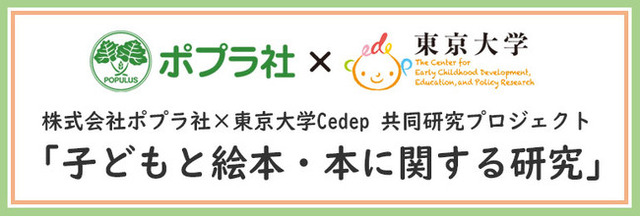東京大学大学院教育学研究科附属 発達保育実践政策学センター(東京大学Cedep)と、株式会社ポプラ社の共同研究である、「子どもと絵本・本に関する研究」プロジェクトでは、子どもの発達と絵本・本の関係や子どもをとりまく絵本・本環境について、科学的アプローチに基づく多角的な研究を進めています。