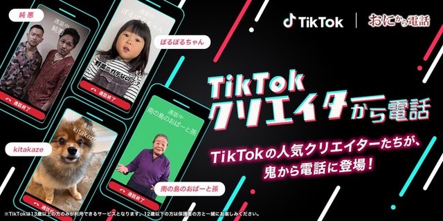 ショートムービープラットフォーム「TikTok(ティックトック)」は、メディアアクティブ株式会社「鬼から電話」とコラボレーションし、「鬼から電話」アプリ内にて「TikTokクリエイターから電話」を11月19日(木)より配信中です。