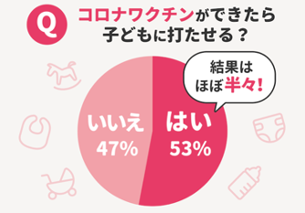 「打たせるか、打たせないか」の二者択一の質問に対し、YESと答えたワクチン積極派・肯定派のママが53%。一方でNOと答えた慎重派・否定派のママが47%と、見事に意見が二分されました。
