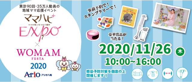 11/26(木) 10:00~16:00 「ママハピEXPO×WOMAMフェスタ@アリオ八尾」