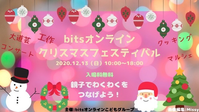 合同会社 bitsオンラインこどもグループ(以下:bits)は、イベント講師や他の親子とやり取りしながら楽しむ、「bitsオンラインクリスマスフェスティバル」を12月13日(日)に開催いたします。
