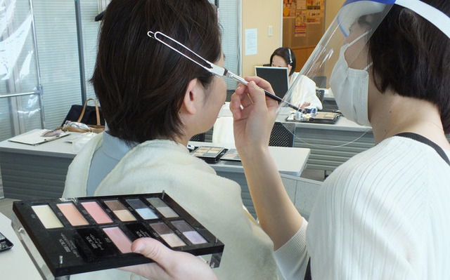 2020年11月11日(水)、埼玉県男女共同参画推進センターが主催する「しごと準備講座」の「就職応援フェア」にて、就活メイクレッスンを開催致しました。“メイクをすることで輝いた自分になろう” というテーマのもと、ベースメイクからポイントメイクまでを実践形式で行い、楽しみながらキレイのヒントを持ち帰っていただくために、一人ひとりに丁寧なアドバイスを行いました。