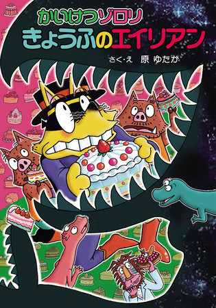 今作ではゾロリが未知なるエイリアンに襲われる!? ゾロリ・イシシ・ノシシの三人組の他、おなじみのキャラクターたちも登場する、笑いありハラハラありの一冊となっています。