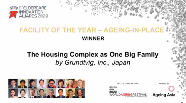 その最優秀賞(FACILITY OF THE YEAR-AGEING-IN-PLACE)を「ぐるんとびー」が受賞し、実質アジア太平洋No.1施設に選ばれました。