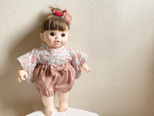 人形玩具の「ぽぽちゃん」とお揃いで身に着けられる和服やバッグ、親子でお揃いの服など、ママも子供も楽しめる商品を取り揃えます。