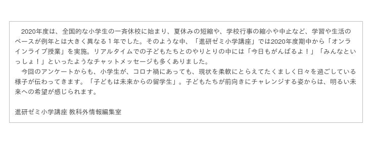 参考情報:コロナ禍でのおうち学習や生活を支援する「進研ゼミ 小学講座」