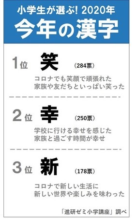「笑」「幸」「新」がトップ3 前向きで充実した小学生生活