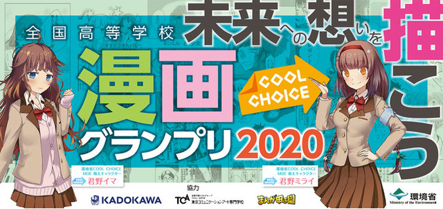 環境省では、様々な分野で活躍する高校生たちを“環境の視点”から応援する“環境×高校生プロジェクト”を発足させ、コラボ企画として、“地球温暖化”等をテーマにした漫画作品を全国の高校生たちから募集する「全国高等学校 COOL CHOICE 漫画グランプリ」を開催しています。このたび、環境大臣賞(グランプリ)をはじめとする各賞を発表、表彰する「全国高等学校 COOL CHOICE漫画グランプリ 2020 結果発表セレモニー」を令和3年3月 27 日(土)に、漫画の聖地アキバ“神田明神”にて開催が決定しました。