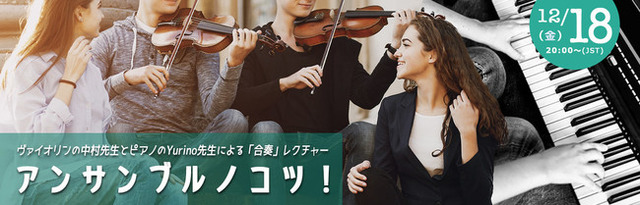 世界中の講師と生徒をつなぐオンライン習い事サイト「カフェトーク(http://cafetalk.com/)」を運営する株式会社スモールブリッジ(本社:東京都渋谷区、代表取締役:橋爪小太郎)は、2020年12月18日(金) にオンラインでご自宅から視聴可能な音楽セミナー「ヴァイオリンの中村先生とピアノのYurino先生による合奏レクチャー」を開催します。