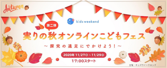 子ども向け「教育×オンライン」の分野では、日本最大級のプラットフォームである「キッズウィークエンド」を運営するキッズシーズ株式会社(本社:東京都中央区、代表取締役:三浦里江)は、11月27日(金)~12月5日(土)の2週末にわたり、未就学児から小学生の子どもたちに向けた「実りの秋オンラインこどもフェス2020」を開催しました。