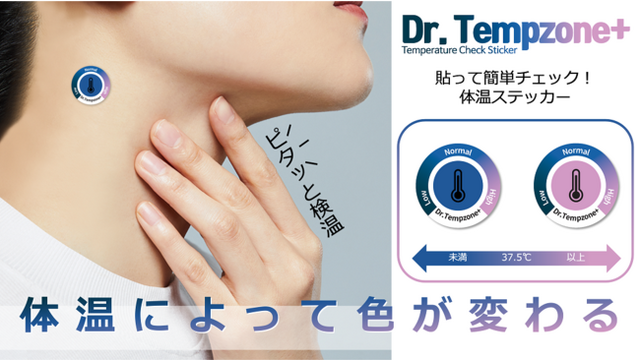 1DAY体温ステッカー「Dr.Tempzone+(ドクターテンプゾーンプラス)」は、貼るだけで簡易的な体温チェックができるステッカーです。