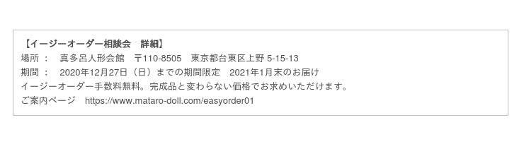 株式会社 真多呂人形(東京都台東区上野5-15-13 代表取締役 金林健史)は、「雛人形 イージーオーダー相談会」を2020年11月27日よりスタートしました。