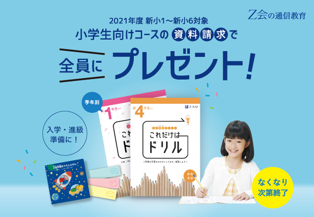 ※『これだけはドリル』は、Z会幼児・小学生コースの教材より抜粋・再編集していますので、現在受講中の方はご請求いただく必要はありません。