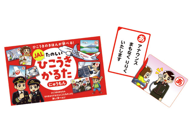 JALで働くパイロットや客室乗務員、整備士、そして空港で働くスタッフたちの協力のもと、飛行機や空港に関する情報を豊富に集めて盛り込んだJALの「ひこうきかるた」。飛行機に関する幅広い情報が中心の入門に加え、お子さまの「もっと知りたい!」に応えた、より専門的で興味をひく情報をご紹介する発展の2種類をご用意しております。