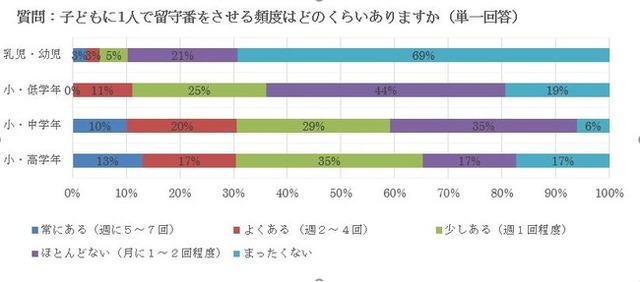 「子どもの安全対策に関する調査」では、小学校中学年以上になると6割以上が週1回以上子どもだけの留守番の機会があるという結果でした。