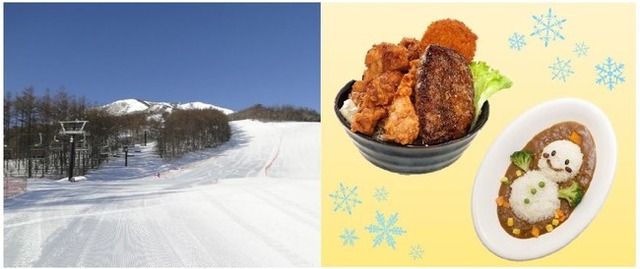 ゲレンデで思いっきり遊んだ後は、富士急レストハウスであったかグルメをお楽しみください。今シーズンは、新メニューが4種類追加。唐揚げやとんかつ、ハンバーグ、コロッケが豪華にトッピングされた総重量1kg超えの「ADTR(あだたら)丼(A:ありえないほど、D:でかい、T:とんでもない、R:量の丼)」や「ロコモコ丼」の他、お子さま向けに、ライスの上に自分でトッピングをデコレーションし世界に一つだけの雪だるまが作れる「雪だるまカレー」、冷えた体を温める「マシュマロココア」を販売いたします。