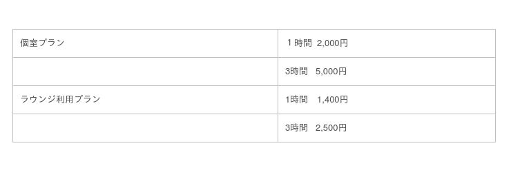 ※個室プラン3時間利用でフルパッケージの場合6,500円程度になる想定です。