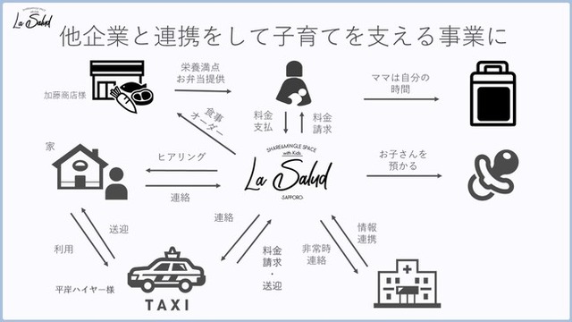 サッポロファクトリー(札幌市中央区)で、託児常設コワーキングスペースを運営するイロドリトイロ株式会社(本社:札幌市手稲区、代表取締役:新岡唯)は、平岸ハイヤー株式会社(本社:札幌市豊平区、代表取締役:神代 晃嗣)及び、KATO SHOTEN(札幌市中央区)等複数事業者と提携し、お母さんやお父さんの休息時間確保を目的とし、送迎手配から食事の手配を含む一時託児を行う託児サービス「託児レスキュー」を、12月21日より開始致します。