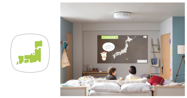 popIn Aladdinとは、世界初のプロジェクター付きシーリングライトで、高品質プロジェクター、高音質スピーカーとシーリングライトが一体になっています。また、AndroidOSも搭載しており、子ども向けのオリジナルコンテンツや映像配信サービスなどが楽しめます。朝の目覚めのタイミングにニュースや天気などの情報を見たり、昼には写真を表示してインテリアとして、夜には子どもと絵本やクイズを、大人は映像配信サービスで映画などが楽しめます。2018年の一般発売から累計で85,000台を販売、2019年にはホームプロジェクター市場で1位(*自社調べ)となっています。