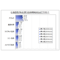 【生命保険会社のイメージに関する調査】『独自性がある』『革新的・先進的』と思う生命保険会社はどちらも「アフラック」がトップ。『独自性』では「県民共済」が2位