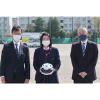東京都との協定に基づき 東京都立淵江高等学校の生徒にヘルメットを贈呈