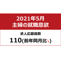 【主婦の就職意欲調査 2021年5月 】主婦求人の応募指数110(前年同月比-10)