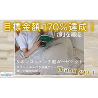 早くも目標金額170%達成!「涼」を織る。さらふわ麻コットン3重ガーゼケットがANAクラウドファンディングサイト【WonderFly】にて先行予約販売中!!